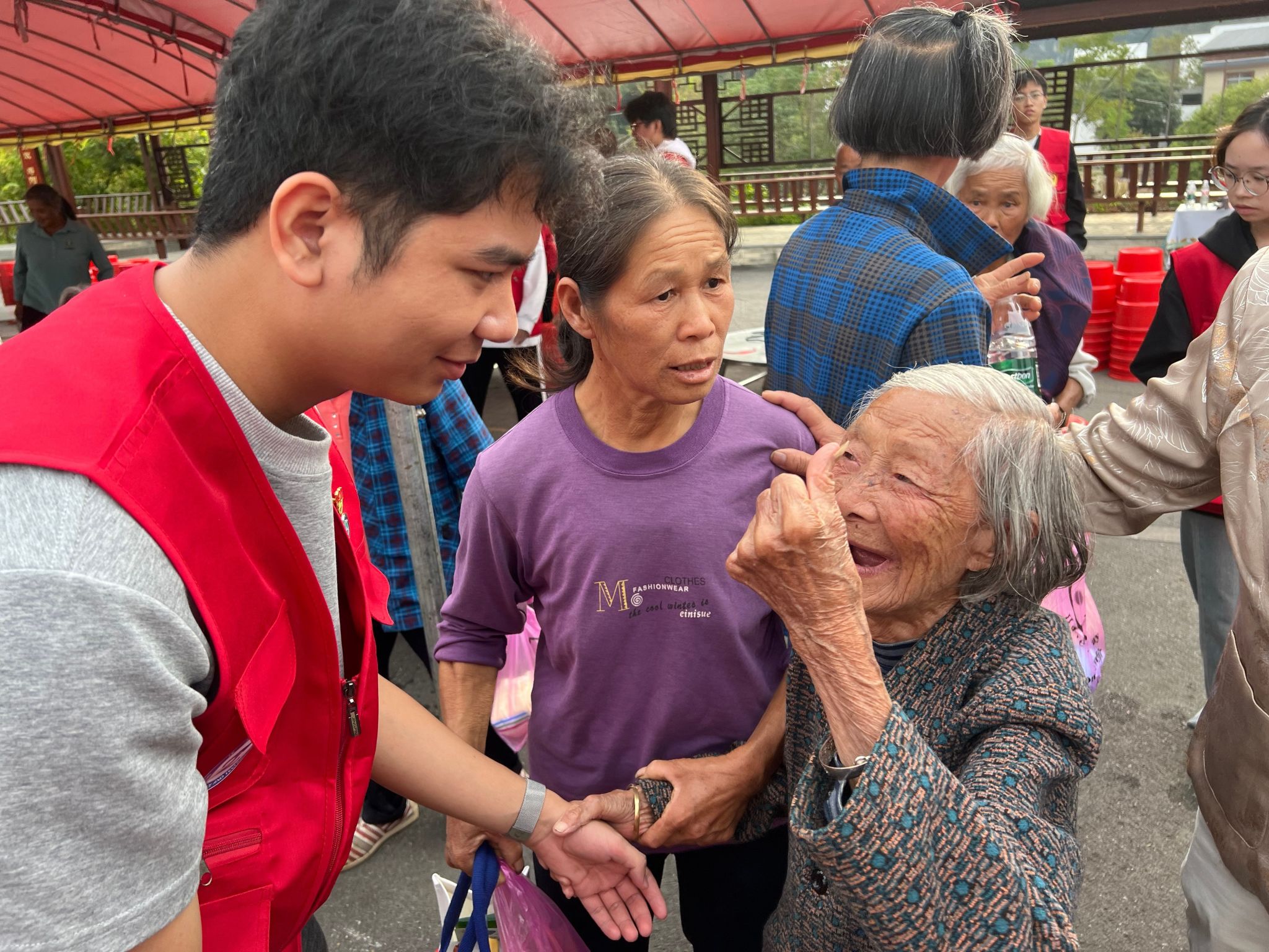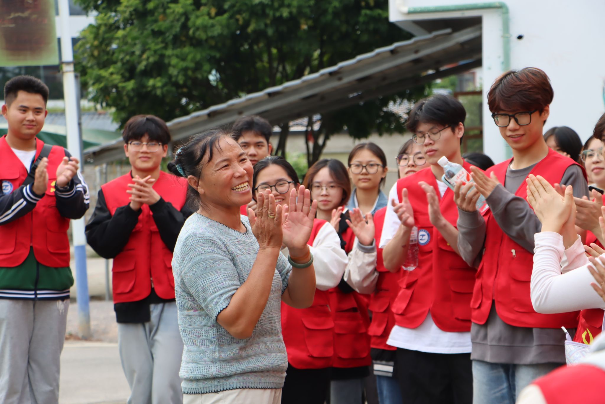 参加活动的老人为青年学子点赞