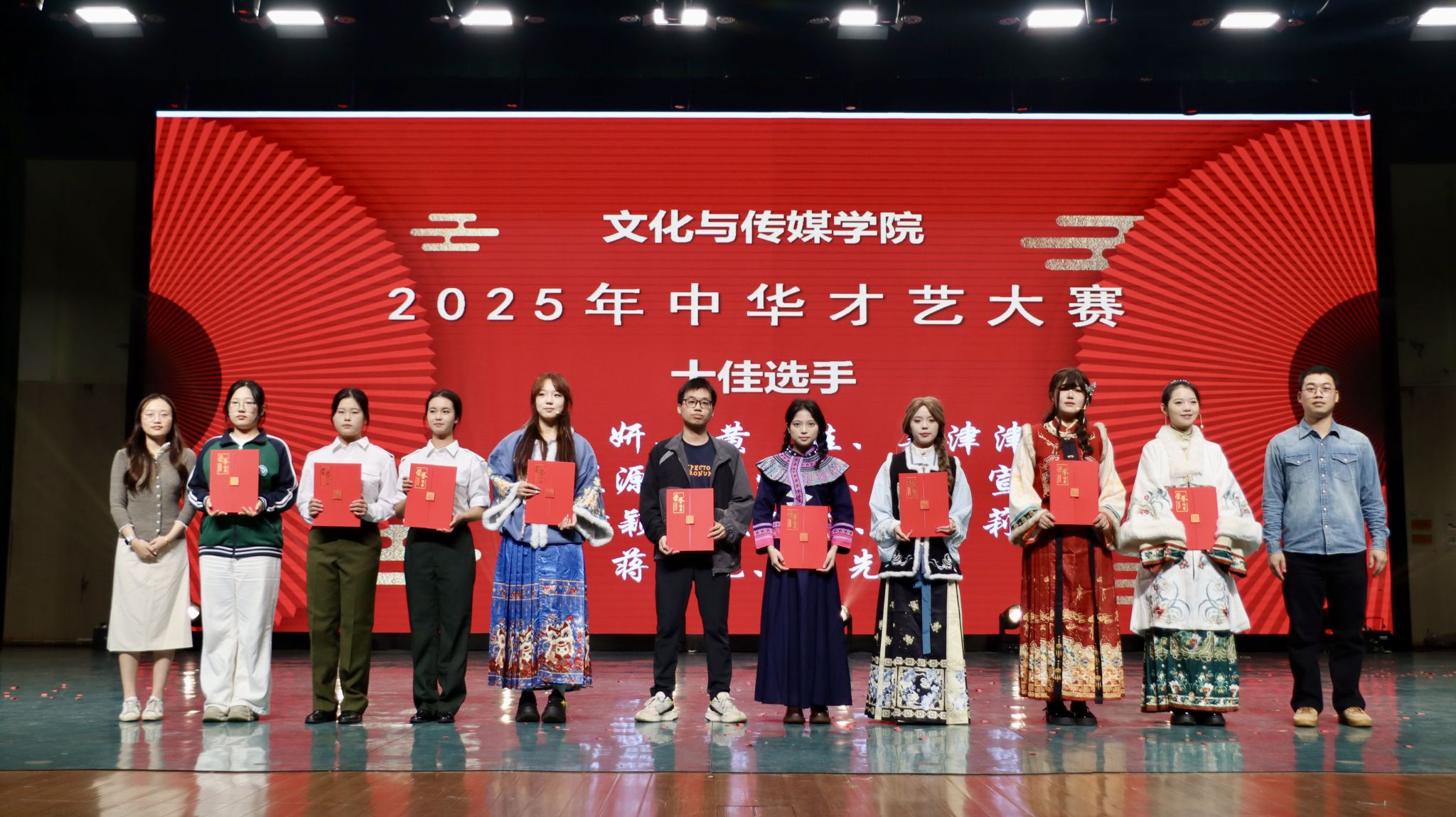 活动现场同步举行了包括师德师风演讲、班主任谈心谈话等师范生系列竞赛的颁奖。同时,学院各教研室本学期课程教学实践相关的微视频创作大赛、中华才艺大赛、传统服饰妆造大赛等多项竞赛的获奖学生还在活动现场登台展示,这些竞赛与课本剧大赛相辅相成,共同围绕 “夯实专业技能、推动实践创新” 的目标,覆盖 “职业素养、教学能力、文化传播” 等关键维度,为学院学生搭建了 “以赛促学、以赛促练” 的成长平台,进一步彰显学院狠抓教学质量、注重实践育人的办学导向。