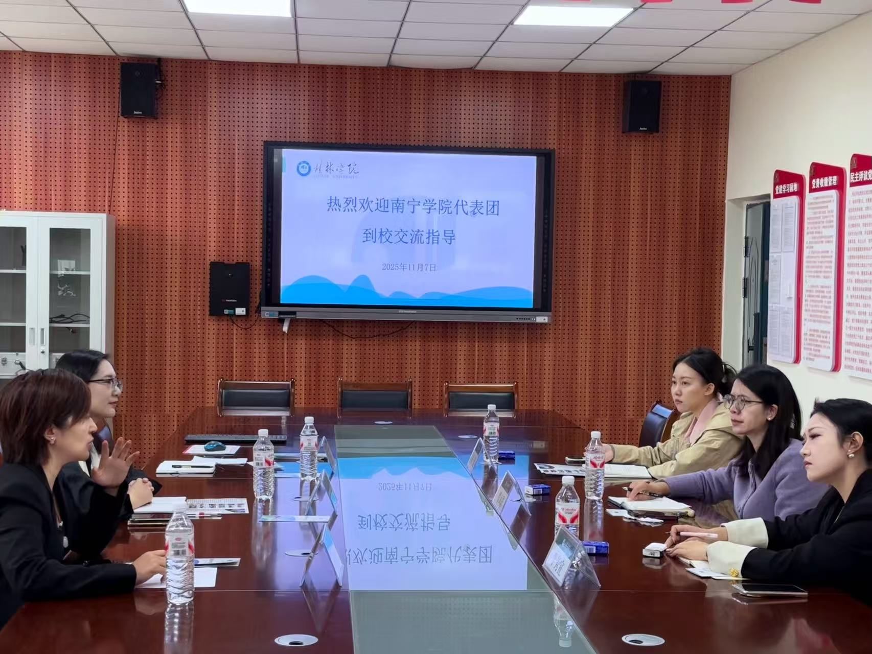 11月7日,南宁学院发展规划与合作交流处一行3人到访学校,两校围绕高校国际化建设展开深入交流探讨。国际合作与交流处相关负责人介绍了学校的办学特色、国际合作发展历程及阶段性成果。南宁学院代表对学校在国际合作与交流方面取得的成绩给予高度评价,认为桂林作为国际旅游名城,高校在开放办学与国际交流方面具有良好的氛围和实践基础,值得学习借鉴。