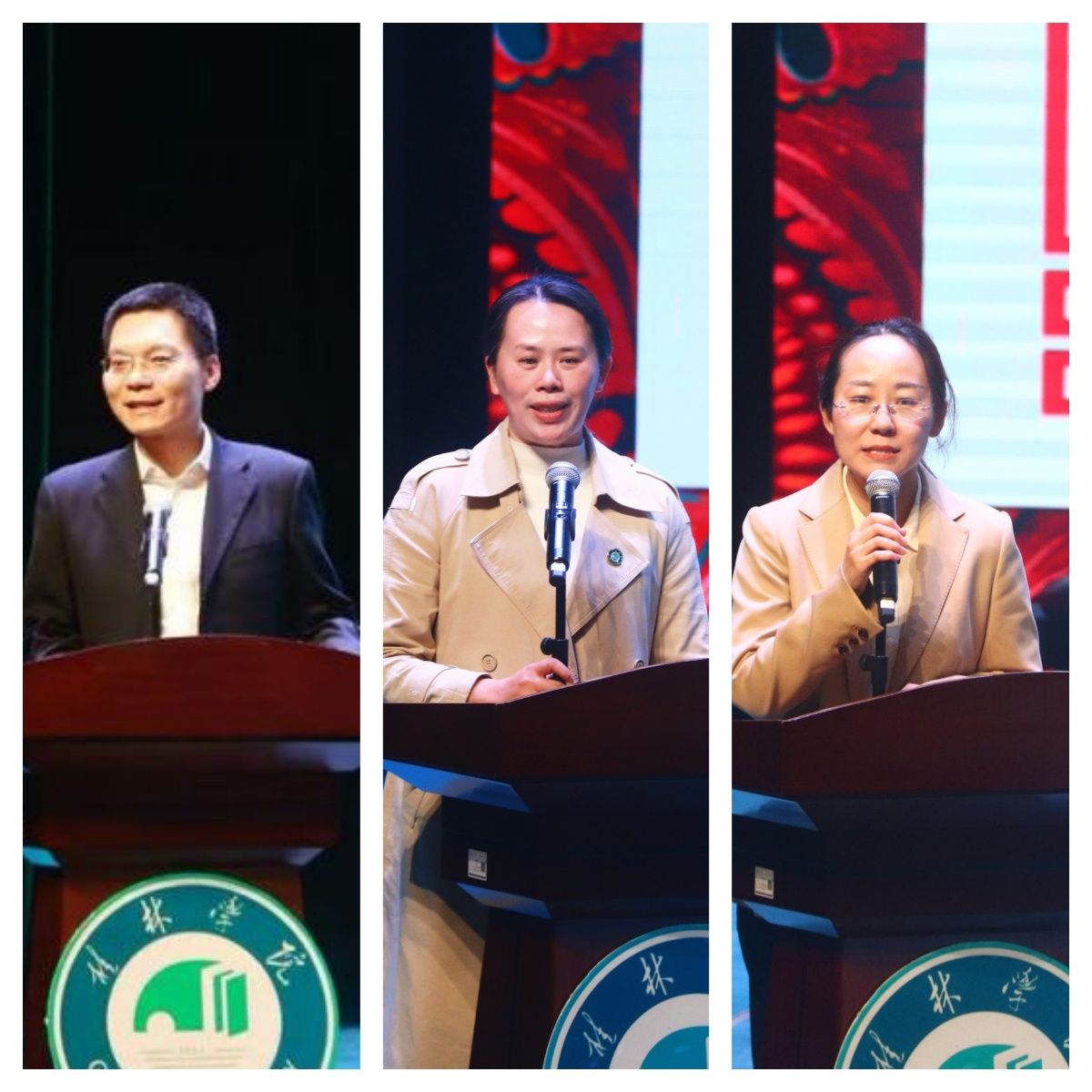 广西师范大学国际文化教育学院党委副书记、纪委书记(左),桂林学院文化与传媒学院党总支书记(中),桂林学院文化与传媒学院副院长(右)分别在会上发言