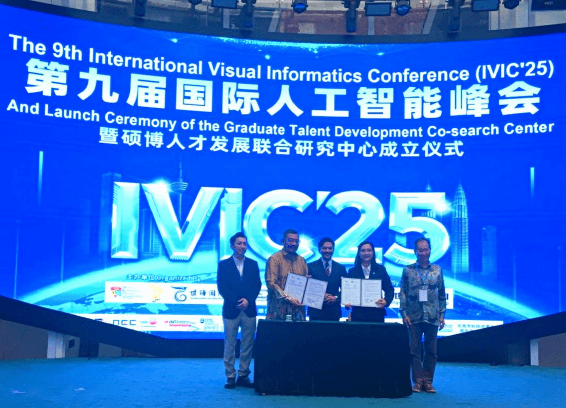 11月12日至13日,第九届国际人工智能会议(IVIC'25)在广东东莞举行。会议由马来西亚国立大学信息研究院与电子科技大学广东电子信息工程研究院联合主办,主题为“未来AI赋能的视觉信息学”。学校国际合作与交流处相关负责人、外国语学院(国际教育学院)及信息工程学院教师组成的代表团参会,积极开展学术交流并完成重要合作签约。