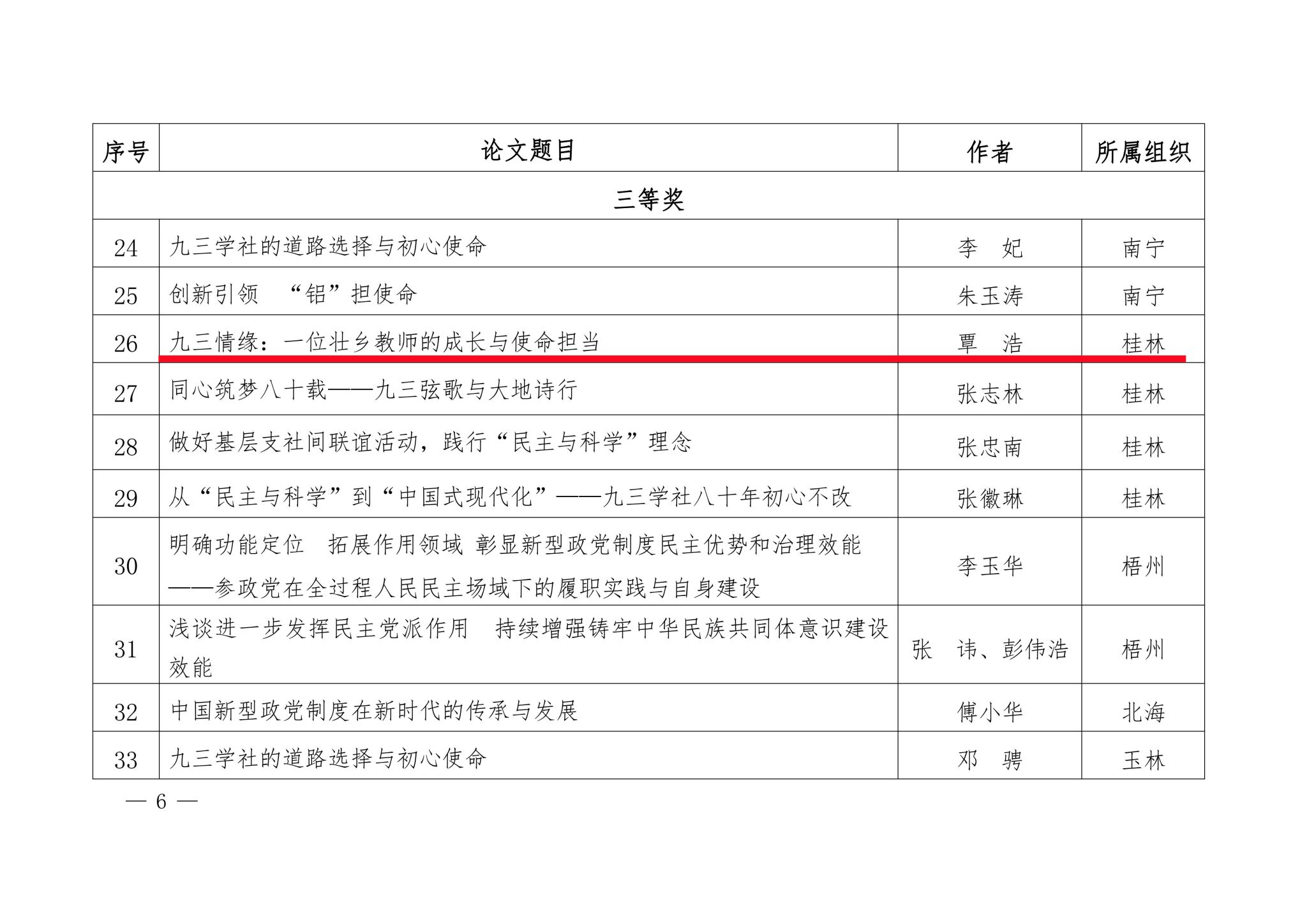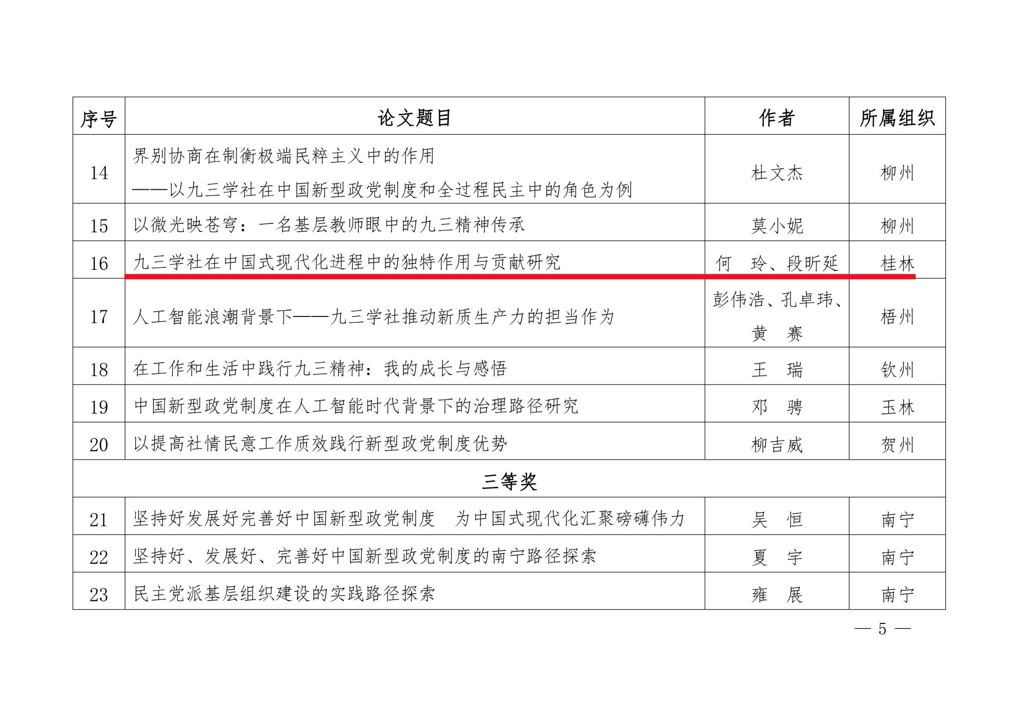 近日,九三学社广西区委为庆祝九三学社创建80周年而开展的主题征文与理论研究征文活动评选结果揭晓。在此次征文活动中,我校教师征文作品荣获二等奖和三等奖各一项。