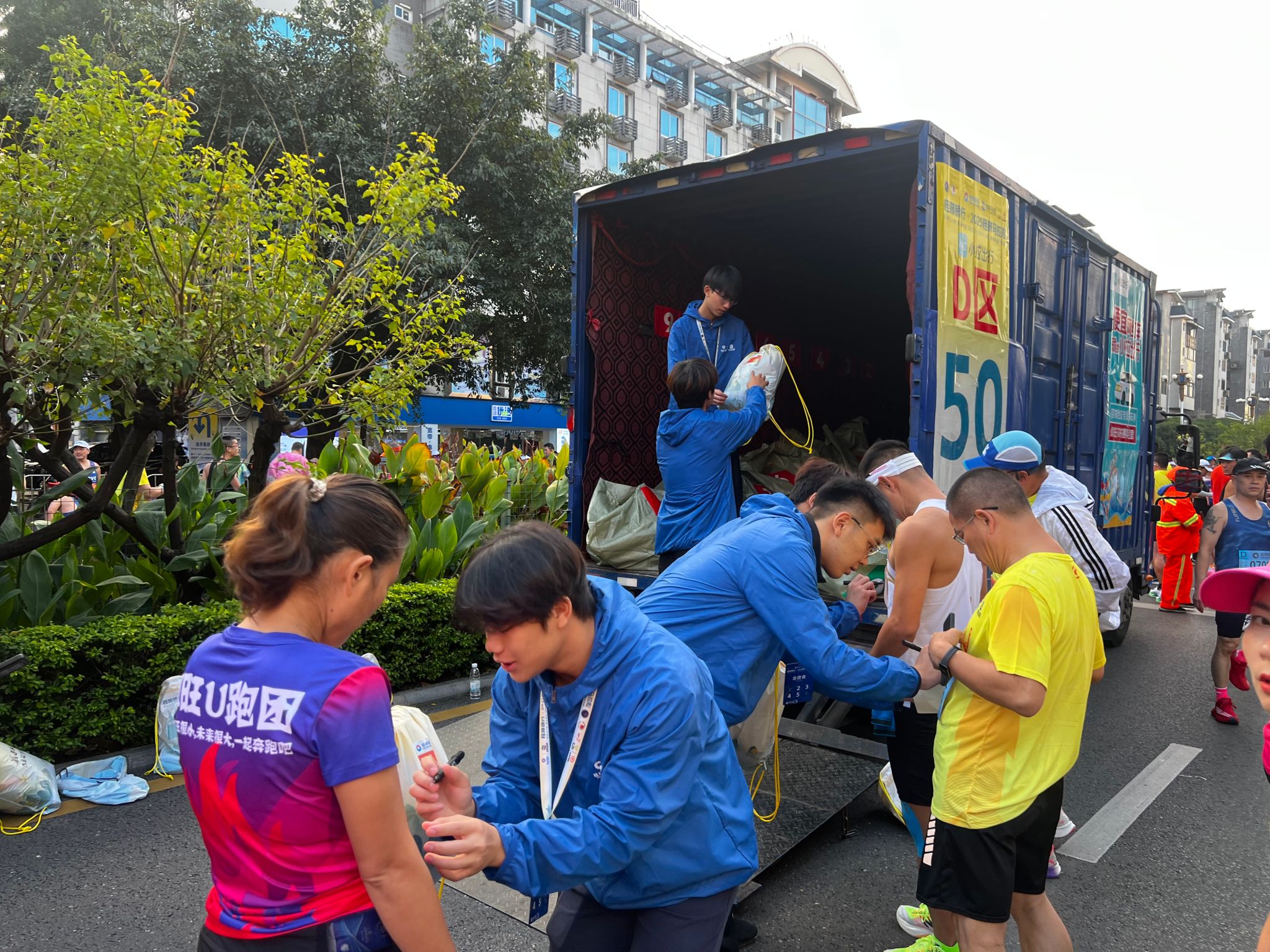 在补给区域,志愿者们分工明确、高效协作,耐心引导选手前往休息区,细致解答关于赛后恢复的咨询,用专业且贴心的服务为选手们缓解疲劳、补充能量。存取包区域的志愿者则严格核对选手号码布与存包信息,妥善存放、快速调取个人物品,耐心回应选手疑问,全程保持热情周到的服务态度,为选手营造便捷舒心的参赛环境。