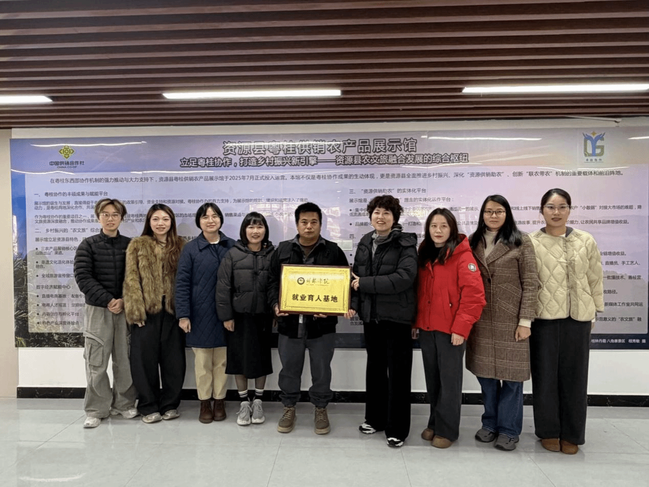 近日,外国语学院商务英语专业教师团队一行七人赴资源县供销社,与该社隆重举行“就业育人基地”合作签约暨挂牌仪式。此次校地携手搭建合作平台,深化产教融合与校地协同,为应用型人才培养与地方产业发展注入新动能,实现教育链、人才链与产业链、创新链的精准对接。