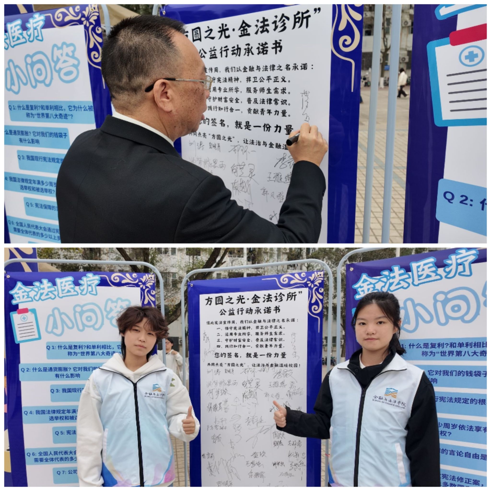 活动现场特别设置了“我承诺,以专业致善”大型签名活动。师生们在庄严的承诺板前郑重签名,许下运用专业、服务社会、守护公正的誓言。这一仪式将活动从简单的咨询互动,升华为一份公共的责任契约,生动诠释了“至善”文化的实践内涵。