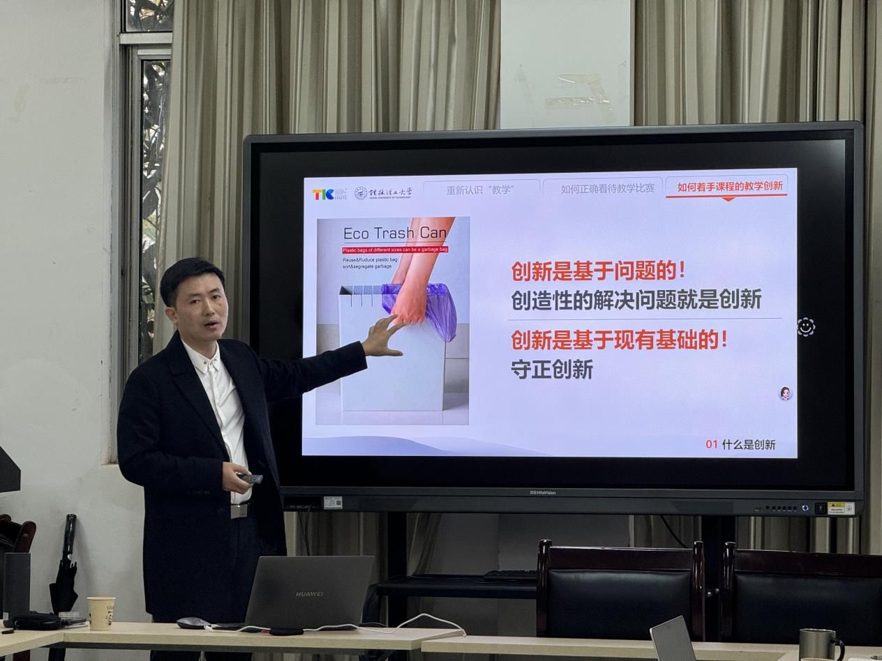 培训中,雷锦锋以其丰富的参赛和评审经验为基础,首先引导教师们从根本出发——重新认识教学,深刻剖析现代教育理念下教与学的辩证关系。随后,他围绕“如何正确看待教学比赛”以及“如何着手课程的教学创新”等核心议题,分享了参赛经历。雷锦锋强调了要坚持以学生为中心、以成果为导向(OBE)的教学设计理念,详细阐释了如何挖掘教学痛点、设计创新路径、撰写高质量报告以及准备课堂实录等实战技巧。