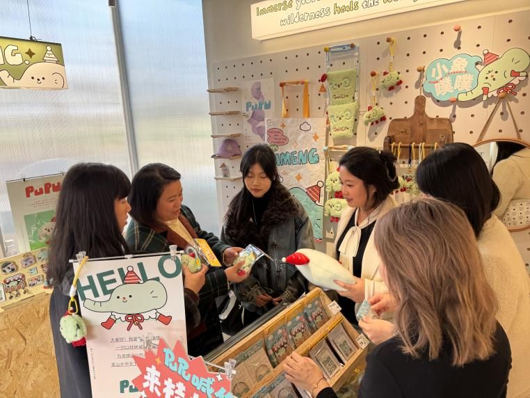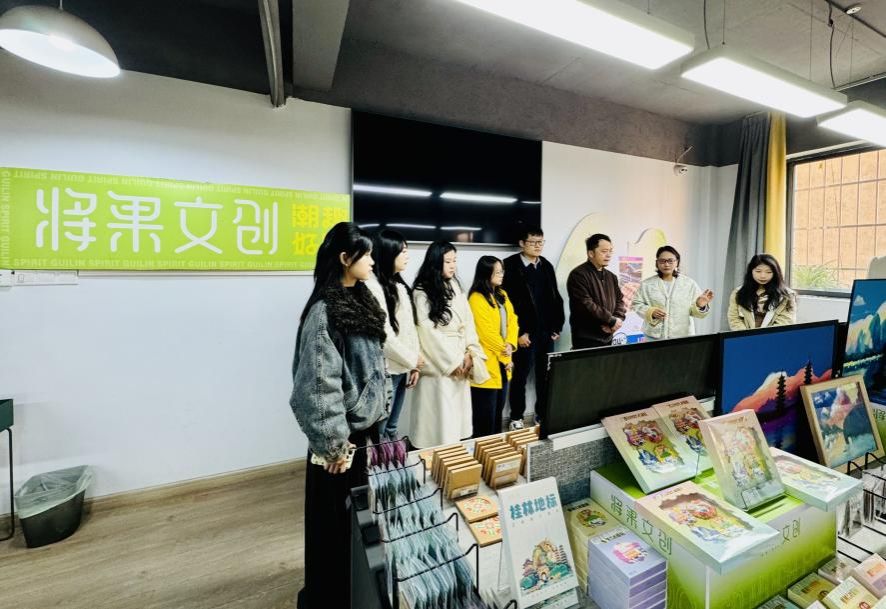 在将果文化创意有限公司,公司负责人蒋韫昕介绍了公司运行情况,表示公司在文旅融合与地域文化创新方面持续探索,对具备文化理解与现代设计转化能力的毕业生有稳定的人才需求。在漓萌小象pupu有限公司,公司负责人邓丽琼热情接待了来访团一行,她详细介绍了企业在IP开发运营与可持续发展方面的实践成果,并表达与高校在创意人才培养方面加强合作的意愿。