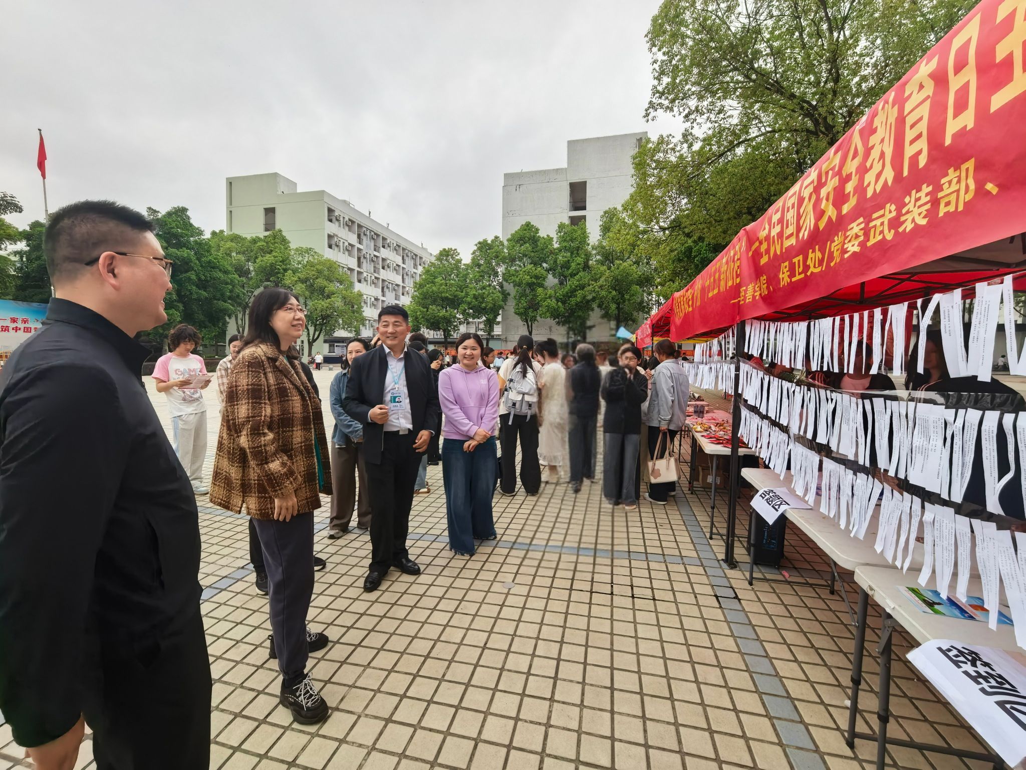 为深入贯彻总体国家安全观,切实筑牢校园安全防线,4月15日中午,学校保卫处/党委武装部联合学生工作处、工商管理学院、至善学院,并携手属地雁山区委政法委、雁山区委保密办、雁山区公检法、雁山区市场监督管理局、雁山镇政府,在乐善广场共同举办“4·15全民国家安全教育日”主题宣传系列活动。校党委书记唐文红、副校长何玲到活动现场指导工作,与师生亲切交流,充分肯定此次活动组织有序、内容详实、氛围热烈,并勉励广大青年学子牢固树立总体国家安全观,主动增强安全防范意识,争做平安校园建设的积极参与者、坚定守护者。