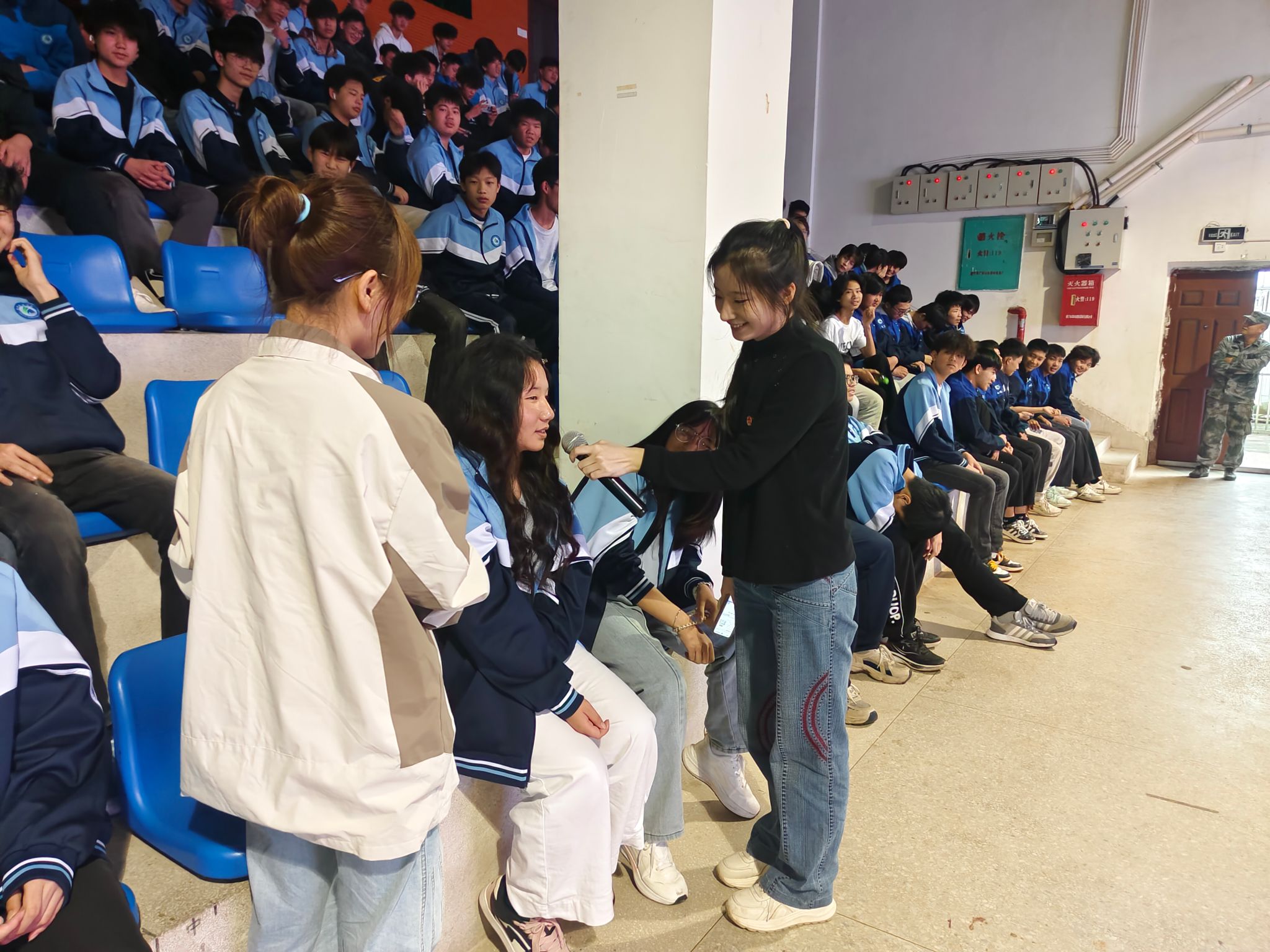 4月15日是第十一个全民国家安全日。为深入贯彻落实总体国家安全观,持续巩固全民国家安全教育日宣传成效,全面增强青年学生国家安全意识、网络安全防护能力与反诈防骗意识,筑牢校园安全防线,4月22日,由共青团桂林市委员会、桂林市12355青少年服务台主办,桂林技师学院承办,学校金融与法律学院普法团队协办的“筑牢法治防线,践行总体国家安全观”主题活动在桂林市圆满举行。此次活动聚焦于增强青少年学生的国家安全意识、网络安全意识及反诈防骗能力,活动吸引了桂林技师学院1233名学生踊跃参与,现场座无虚席,学习氛围热烈浓厚。