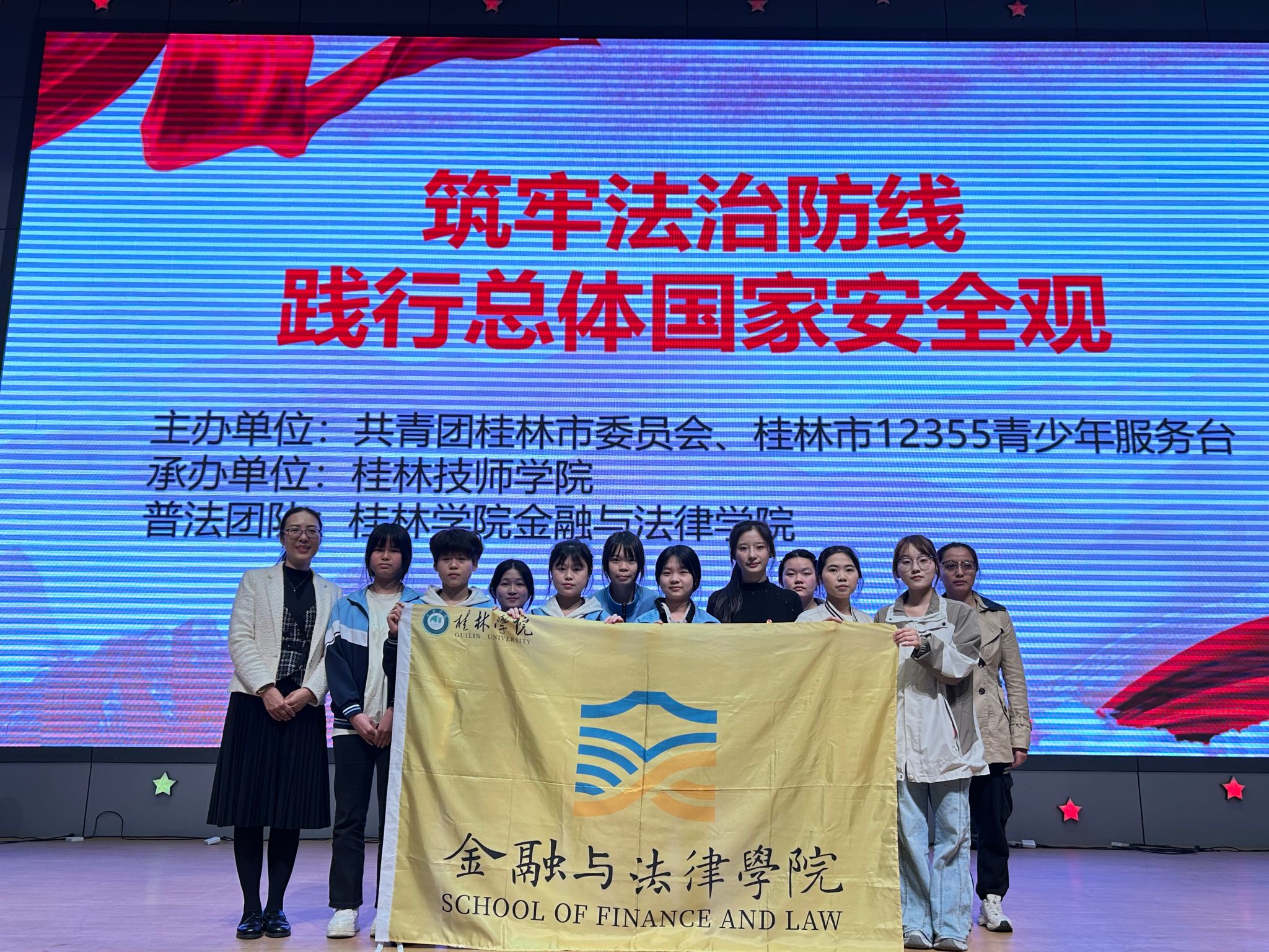 未来,金融与法律学院普法团队将继续联合共青团桂林市委员会、桂林市12355青少年服务台,持续开展规模化、精准化、常态化校园普法行动,以定制化宣讲内容护航青年成长,共同构建安全、文明、和谐的平安校园环境。