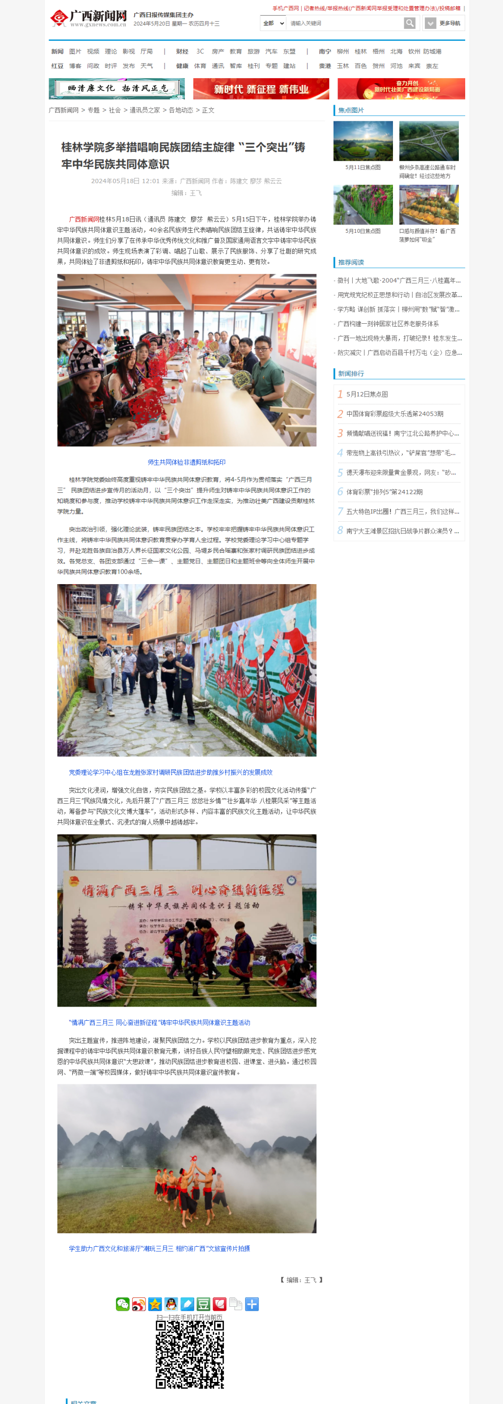 广西新闻网:《桂林学院多举措唱响民族团结主旋律 “三个突出”铸牢中华民族共同体意识》