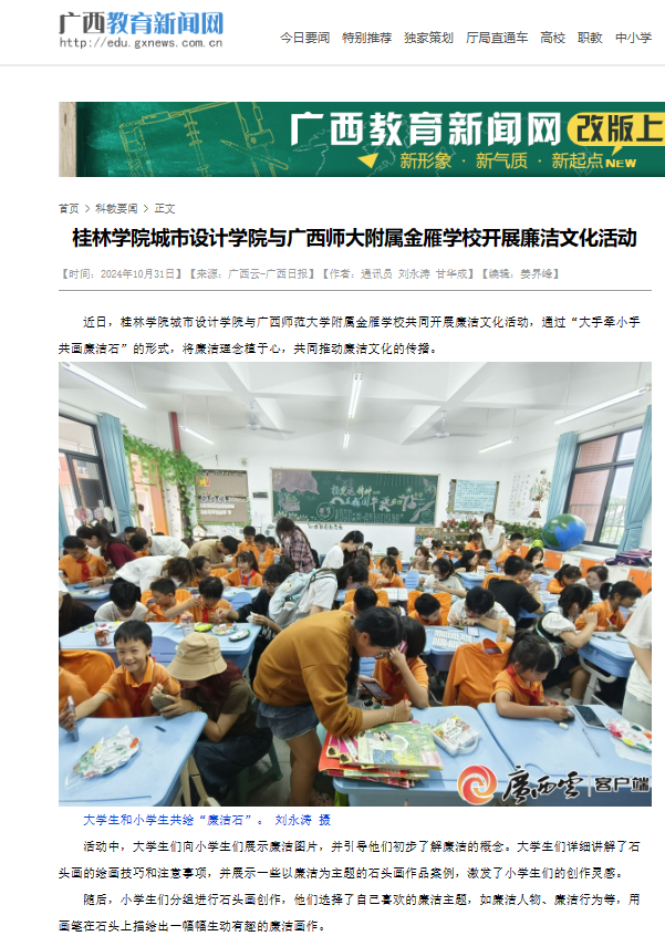 广西教育新闻网:《桂林学院城市设计学院与广西师大附属金雁学校开展廉洁文化活动》