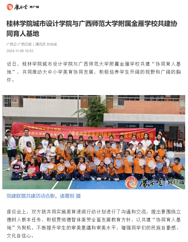 广西云:桂林学院城市设计学院与广西师范大学附属金雁学校共建协同育人基地