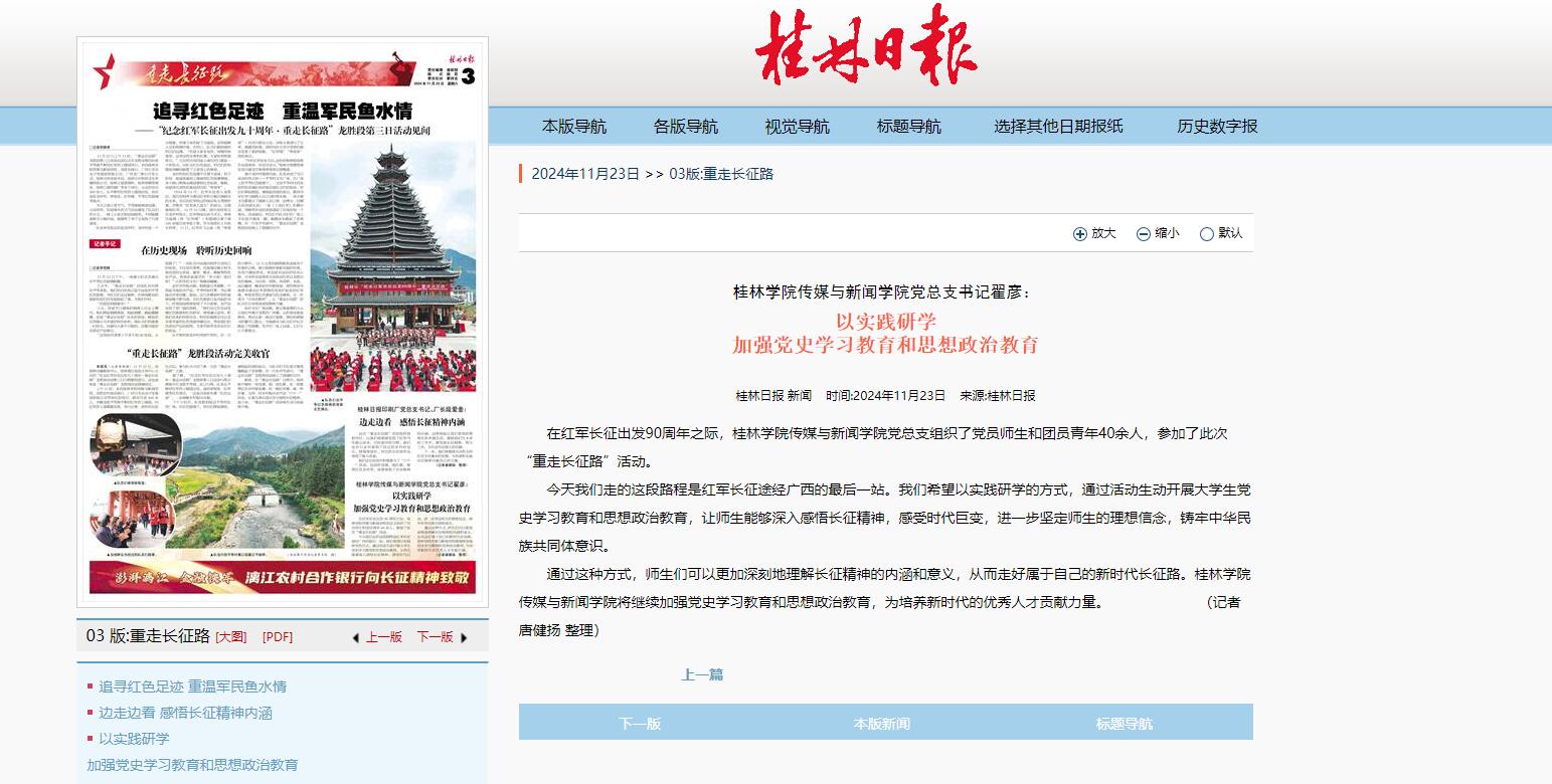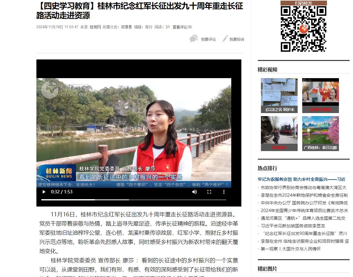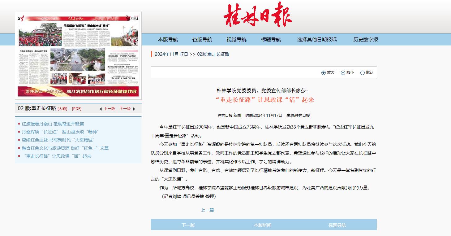 桂林日报:《桂林学院党委委员、党委宣传部部长廖莎:“重走长征路”让思政课“活”起来》