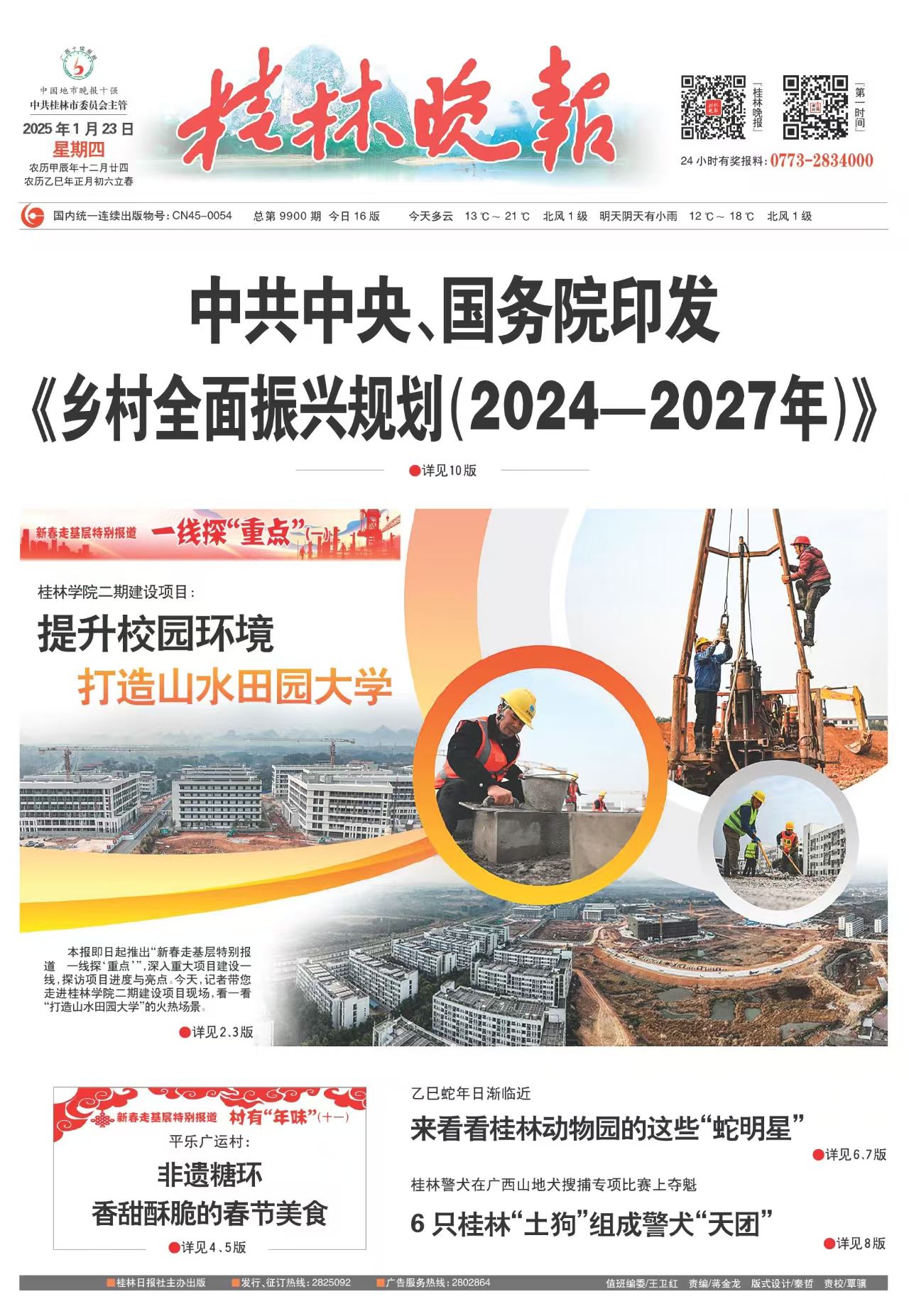 1月23日出版的桂林晚报推出“新春走基层特别报道 一线探‘重点’”。深入重大项目的建设一线,书写新气象、新变化,从建设者们的奋斗姿态中展望桂林更加美好的明天。报道以《桂林学院二期建设项目:提升校园环境 打造山水田园大学》为题介绍了我校二期建设项目进展。