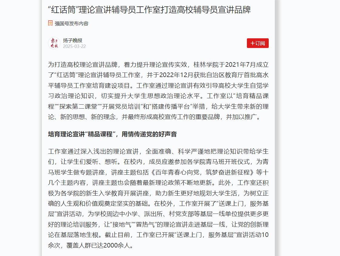 学习强国:《“红话筒”理论宣讲辅导员工作室打造高校辅导员宣讲品牌》
