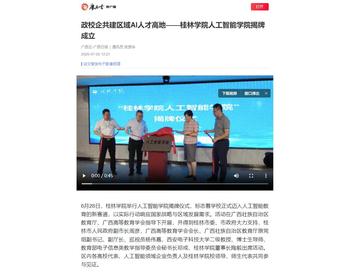 桂林日报:《政校企共建区域AI人才高地——桂林学院人工智能学院揭牌成立》