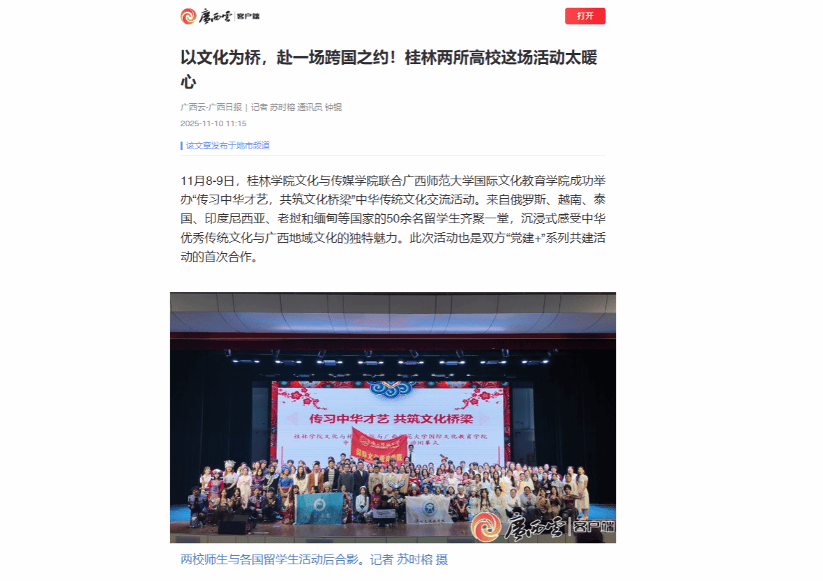 广西云:《以文化为桥,赴一场跨国之约!桂林两所高校这场活动太暖心》