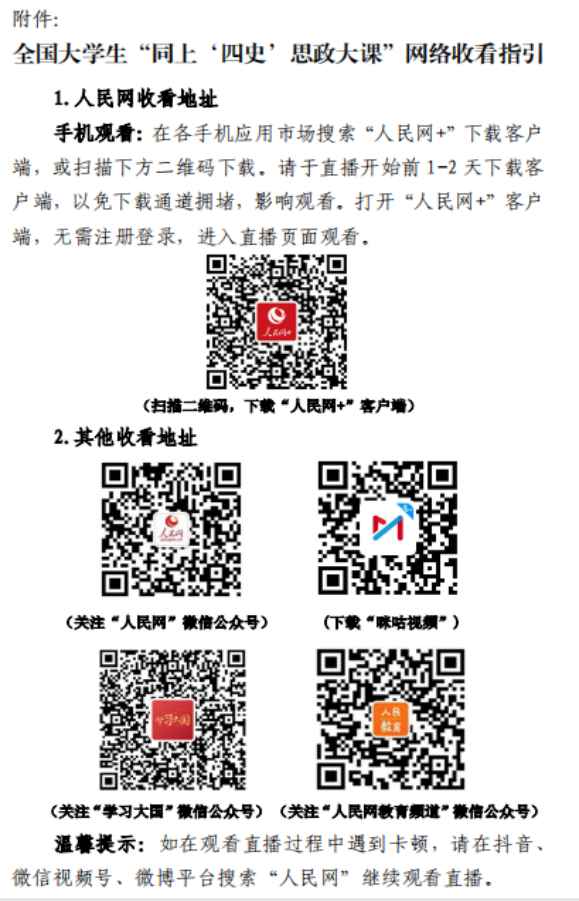 附:全国大学生“同上‘四史’思政大课”网络收看指引