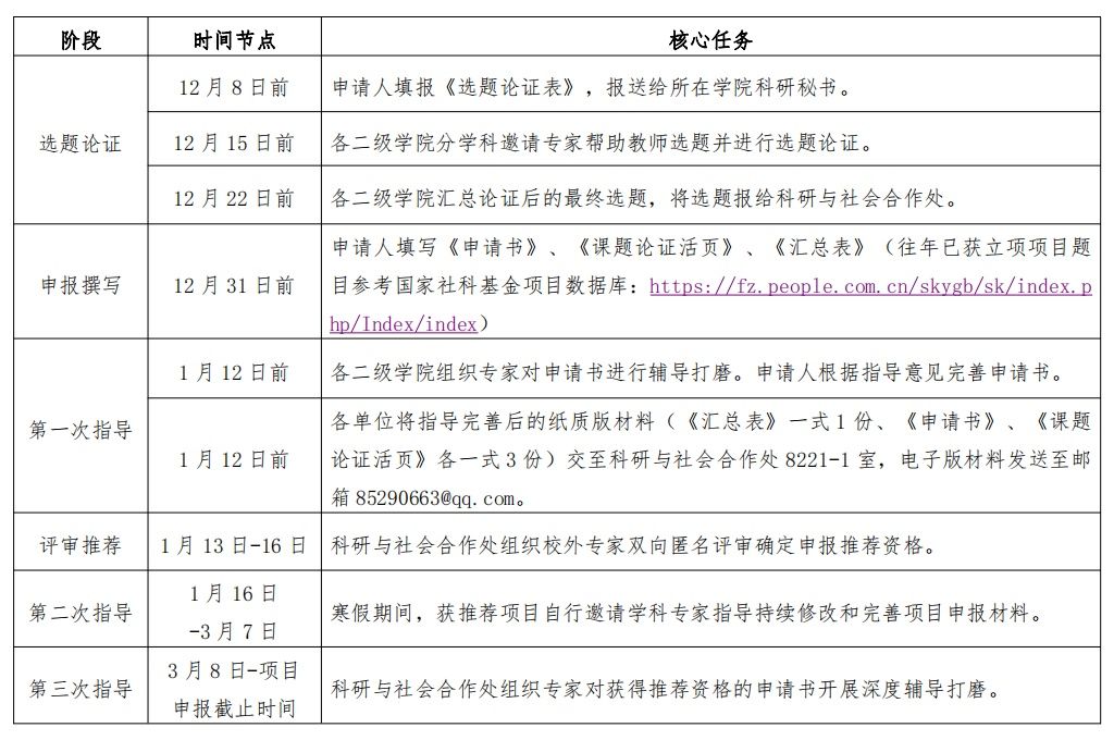 为做好2026年度国家社科基金项目申报工作,实施有组织科研,有效提高项目申报质量,按照往年国家社科基金项目申报公告相关要求,结合学校实际,现将有关事项通知如下: