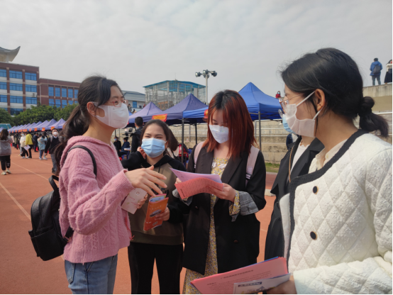 为做好我校参会毕业生的现场指导和服务工作,加强与用人单位的联系对接,我校在双选会现场专门设置了大本营。双选会期间,参会老师为毕业生提供求职应聘指导、就业推荐表和协议书等应聘手续办理等现场服务;分别深入到各个招聘区域,针对性开展用人单位对接工作,重点了解招聘需求、收集就业信息和应聘方式、校企合作交流等方面内容,同时,积极向毕业生推荐用人单位。