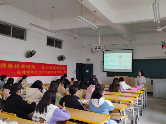 为进一步提高管理工程学院毕业生就业质量,拓宽毕业生就业渠道,实现高校与企业的良性互动,形成实习、就业的紧密连接。3月24日,管理工程学院邀请广西太古可口可乐饮料有限公司在3510教室为2019级和2020级学生做宣讲会。光临本次宣讲会的嘉宾有广西太古可口可乐饮料有限公司人力资源部和市场营销部的经理和主任共计5人;出席本次活动的学院领导及老师有管理工程学院党总支书记甘华成以及毕业班辅导员代表郝环一、黄淑娟,本次宣讲会共有50名学生参加。