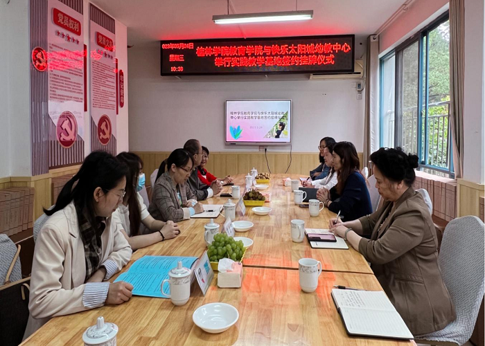 为深入贯彻落实党中央、国务院关于高校毕业生就业工作的决策部署和教育部《关于开展全国高校书记校长访企拓岗促就业专项行动的通知》精神,深化产教融合,更好地推动就业工作,5月24日上午,教育学院党总支书记周杰率队赴雁山快乐太阳城幼教中心举行实践教学基地签约挂牌仪式,学院副院长黄小玲,学前教育教研室张桂秋、何子璇、赵红老师和辅导员余华老师参加了此次活动。