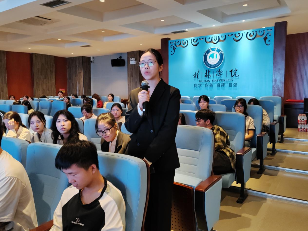 在企业宣讲环节,四家参会企业代表依次上台,围绕企业文化、核心业务、发展战略及实习岗位需求等展开详细介绍,涵盖中海物业管理有限公司深圳分公司、深圳市鸿荣源物业服务有限公司、华保盛物业服务(桂林)有限公司、桂林联发盛泰物业服务有限公司等知名企业。宣讲内容生动务实,现场互动环节中,学生就职业发展路径、实习培养体系等问题与企业代表深入交流,气氛热烈活跃,为后续实习双选会的顺利开展奠定了良好基础。