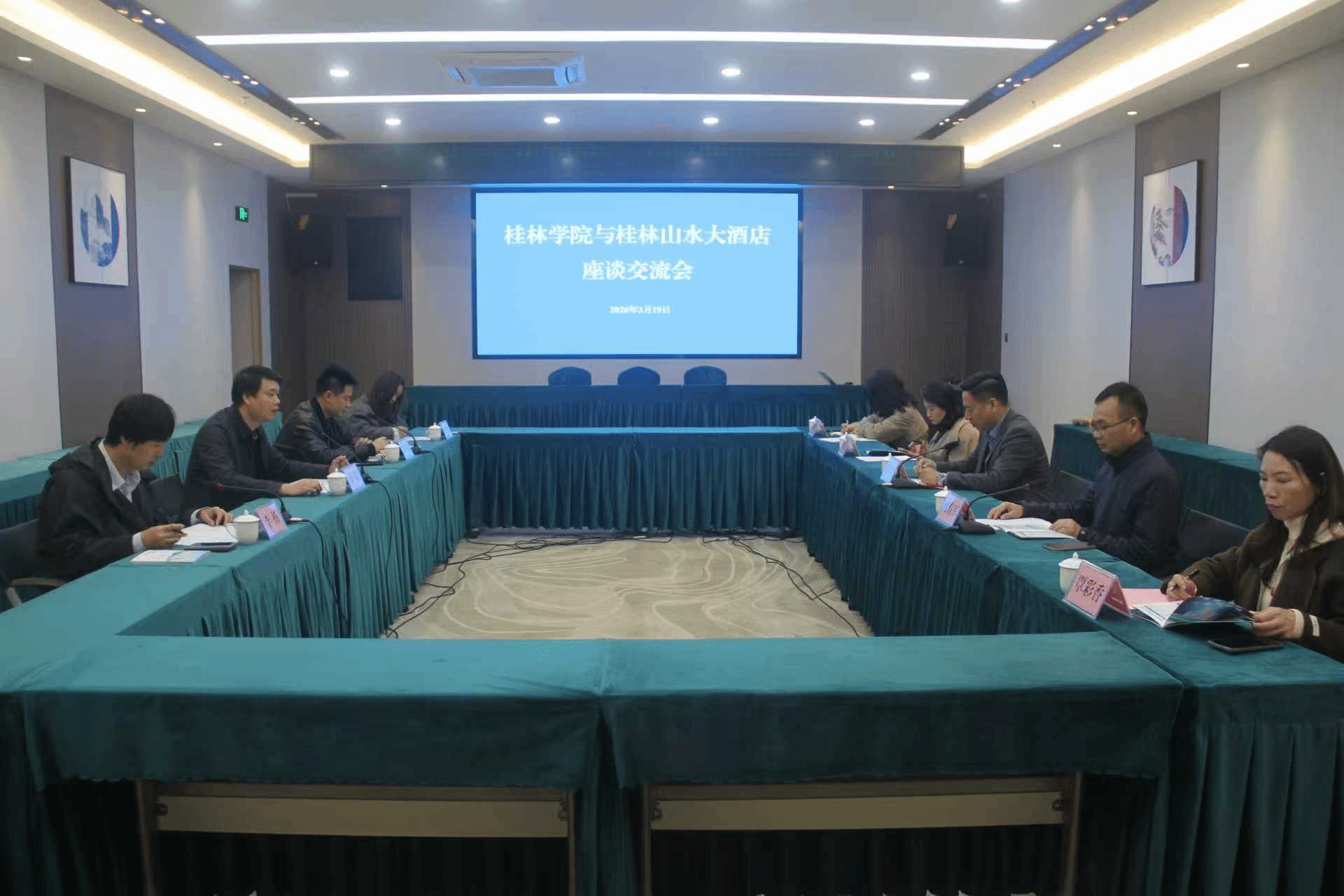 康养旅游教研室副主任刘小玲围绕酒店管理专业建设及人才培养现状作了专题介绍,从课程体系、实践教学、学生能力培养等方面阐述了专业办学特色。苏军平副总经理介绍了桂林山水大酒店的发展历程、品牌理念及未来战略布局,重点阐述了企业在酒店营销、康养酒店建设、会议服务等领域的人才需求,表达了深化校企合作的意愿。