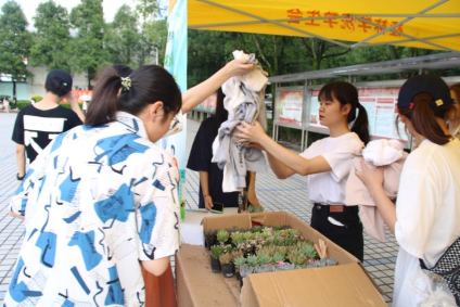 活动现场,同学们可以通过垃圾分类答题或凭借旧衣物、塑料瓶、废旧电子产品等物件按一定的数量来免费兑换绿色盆栽一个。活动结束后,学生会工作人员将活动置换来的旧物进行分类处理,避免资源浪费和环境污染。