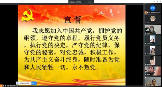 图:支部书记宋丹阳老师带领新党员进行入党宣誓