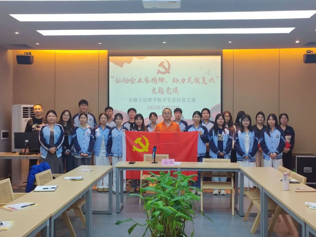 为进一步弘扬中国共产党人的精神谱系之企业家精神,激励广大学生党员在新时代继续发扬企业家精神,为实现中华民族伟大复兴的中国梦贡献力量。10月22日晚,金融与法律学院学生社区党支部在杉湖家苑“一站式”学生社区组织召开“弘扬企业家精神,助力民族复兴”主题学习教育活动,党支部书记、党员、积极分子代表参加本次活动。