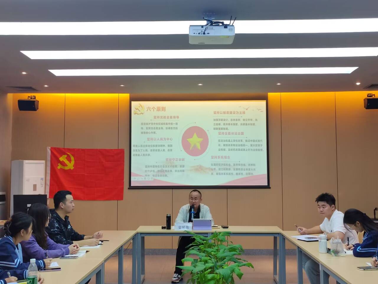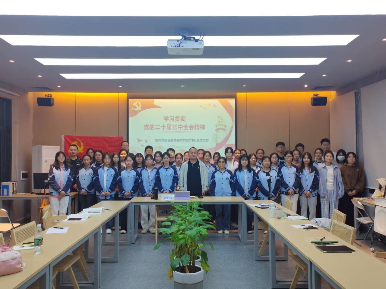 为深入学习贯彻党的二十届三中全会精神,进一步提高师生党员的政治站位,推动全会精神入脑入心入行,11月14日,金融与法律学院学生社区党支部在杉湖家苑“一站式”学生社区辅导员工作室顺利召开“学习贯彻党的二十届三中全会精神”专题党课。党支部书记、学生党员、积极分子代表参加本次活动。