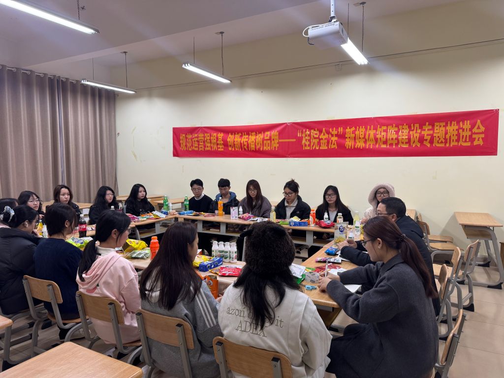 随后,新媒体部成员围绕“破解运营难题、提升传播效率”展开热烈讨论。大家踊跃发言,分享工作经验,明确分工思路,进一步增进了团队协作意识。党总支副书记在总结中强调,规范运营是公众号可持续发展的基础,创新传播是突破瓶颈的关键。他鼓励团队成员以学生校园生活为核心,整合资源、协同发力,努力将“桂院金法”打造成优质的校园新媒体品牌。