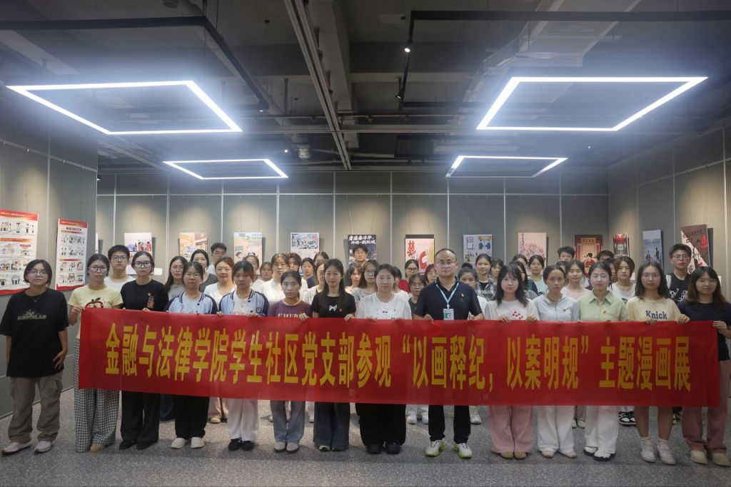 为深入推进党风廉政建设,增强师生廉洁自律意识,营造风清气正的校园环境,6月22日,金融与法律学院学生社区党支部组织师生党员在嘉善楼艺术创意展厅参观学校“以画释纪,以案明规”主题漫画展。党支部书记、全体党员及积极分子代表参加本次活动。