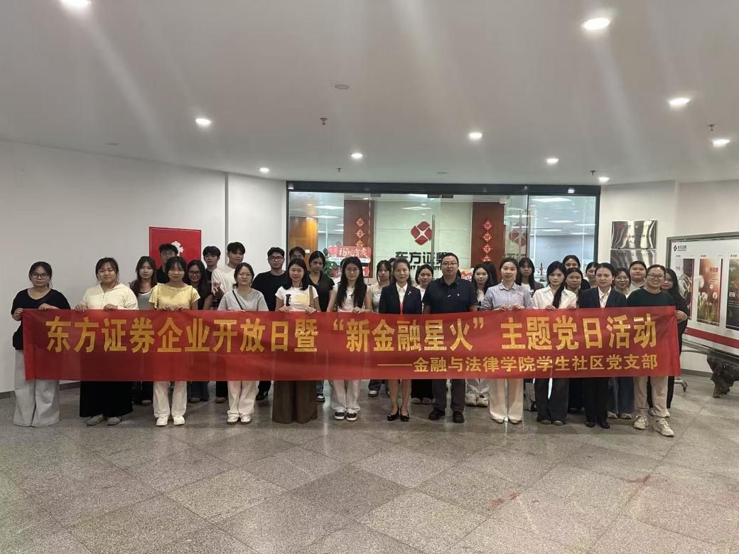 为深化校企协同育人、推动党建与金融专业教育深度融合,10月17日下午,金融与法律学院学生社区党支部联合东方证券桂林中山中路营业部党支部,共同举办了“‘新金融星火’暨东方证券企业开放日”主题党日活动,以实地研学形式探索“党建+新金融”育人新路径。