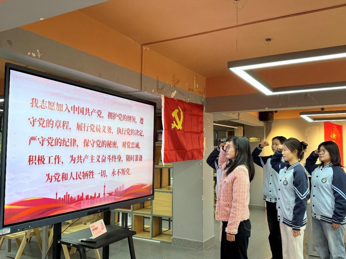 活动最后,在党支部书记的带领下,全体党员面向党旗庄严宣誓,重温入党誓词。铿锵有力的誓言回荡在会场,彰显了学生党员不忘初心、牢记使命的坚定信念。