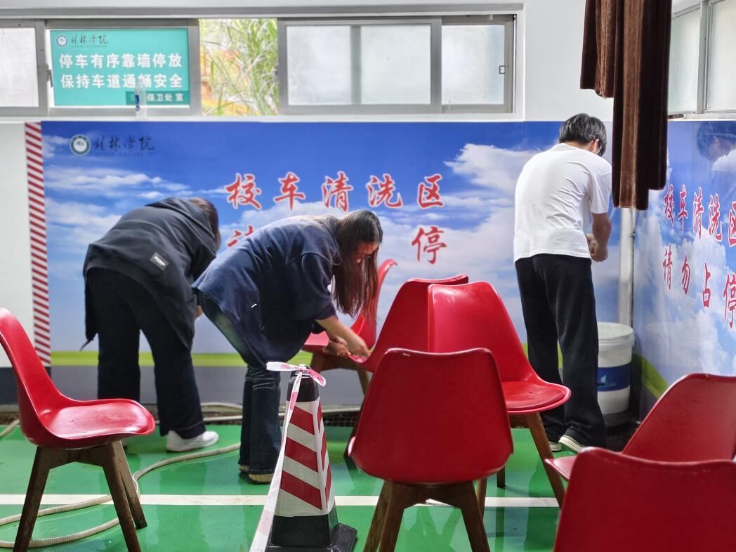 活动现场,志愿者们分工协作,手持扫帚、簸箕、抹布等清洁工具,对学院周边公共区域开展全方位清洁整治。清理废旧杂物、规整各类板材、清除墙面胶痕,每个角落都留下了志愿者们忙碌的身影;擦拭桌椅缝隙、清扫地面死角、拖拭污渍痕迹,大家以一丝不苟的态度,让环境变得整洁明亮。从分工到协作,从细节到全局,志愿者们相互配合、齐心协力,用汗水让学院环境焕然一新。