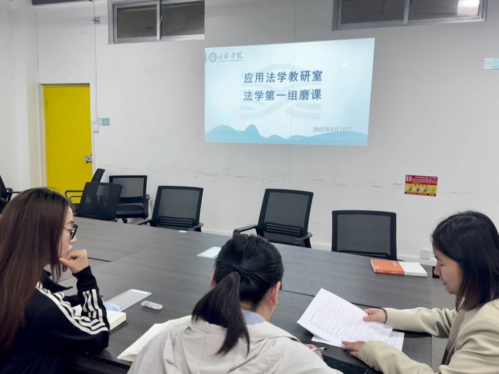 近日,金融与法律学院应用法学教研室一组磨课组积极行动,顺利开展课程初磨活动。此次活动旨在深入贯彻全国教育大会精神,营造教师间相互学习、优势互补、携手共进的良好环境,助力全院教师摒弃“水课”,精心打造“金课”。通过持续打磨与深入研究,推动教师在教学实践中不断进步,切实提升学院教师的教学技能,进而全面提高学院的教育教学质量。