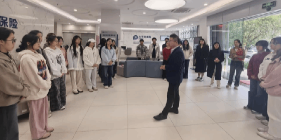 党建引领践初心,校企携手启见习。活动伊始,师生在公司党员骨干引导下,参观了办公区域、“党员先锋岗” 服务大厅及适老化服务专区,让同学们直观感受党建引领下的企业服务温度。随后,企业展示了智慧养老服务的实践成果,凸显金融保险的民生价值。