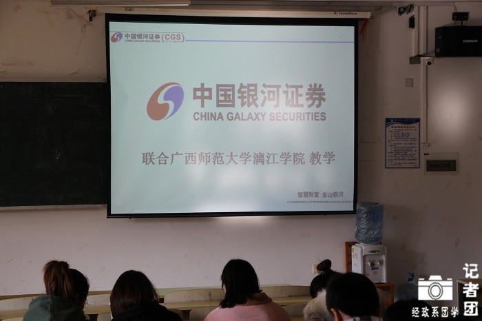 此次讲座围绕着“准确自我定位,理性择业就业”“实现全面发展,拓宽就业渠道”等主题开展。首先,由银河证券桂林营业部客户经理江雪开展知识宣讲。江经理跟同学们普及了证券这一行业的地位和前景,帮助在场同学纠正对证券行业理解上的错误认知,端正同学们对证券行业的客观印象,同时江经理强调,如果想要自我能力的提升和自我收入不断提高的职业,可以选择像证券这种具有良好发展前景的行业。随后江经理介绍了证券行业的主要工作分类,方便同学们进行就业选择。最后,理财经理谢毅婷进行补充性发言。谢经理跟同学们分享了自己工作上的真实经历,提到了工作初期的辛苦与坚持,但同时也得到了锻炼,工作能力和工资水平都有了提高。