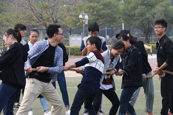 秋风颂爽的早晨,满怀笑颜、充满朝气的青年志愿者们在田径场有序集中,开启有意义的干训。各式各样有趣的游戏,欢声笑语填满了田径场。最令人欣喜的是系腿走和拔河,在系腿走活动中经政系和中文系各分成三组进行比赛,每位队员既紧张又兴奋,过程中有跌跌撞撞、步伐不整齐,但是每一组都没有放弃,而是团结并进,努力走向终点。拔河比赛更是激进,首先是团队间的比拼,最后是两系的对决,比赛开始队员们相互用力往本队后方拔,加油声也相继越来越大,最后由中文系获得本次活动的胜利。在此次活动中,充分体现了友谊第一、比赛第二的含义,使在场的各位志愿者收获了不一样的感受。干训逐渐接近尾声,大家拎着各自的小奖品,合影留念这快乐时光,为活动做出完美的结束语。