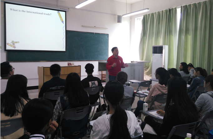 首先,巫大榕老师以一段流利的英文自我介绍作为开场白,活跃了会场气氛。接着,其通过大量图片及数据向同学们展示了当前中国的国际贸易地位,及我国目前的贸易战略,其中对中国与全球经济贸易一体化进行重点介绍,极大丰富了同学们的外贸行业知识。在此基础上,巫老师总结归纳了国贸专业学生的就业现状,指出未来有利的就业方向,及同学们需要具备的职业资格证书。最后巫老师指出,作为国贸专业的同学,英语是找到好工作的敲门砖,专业技能是升职的核心,希望同学们要注重专业知识的学习,努力提高自己的英语水平,并且规划好自己的人生版图。