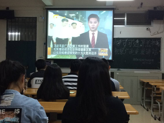 2017年5月25日,法学学生党支部在1206教室组织14、15法学全体积极分子和预备党员共同光看学习习近平总书记在中国政法大学讲话视频。总书记对中国政法大学的考察,不仅体现了总书记对法制建设的重视,也是推进全面依法治国战略布局的重要举措。