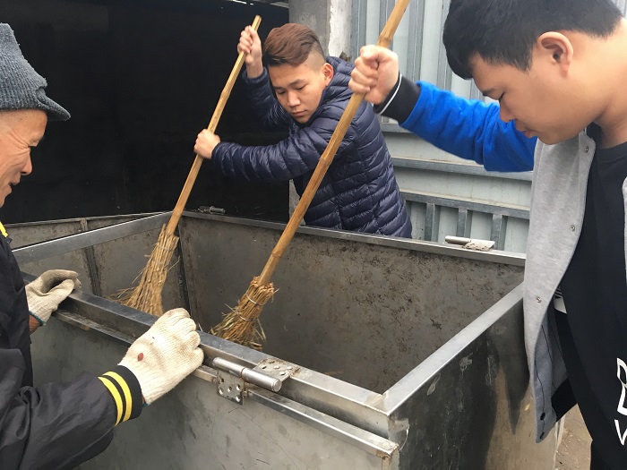 同学们在室外进行志愿活动