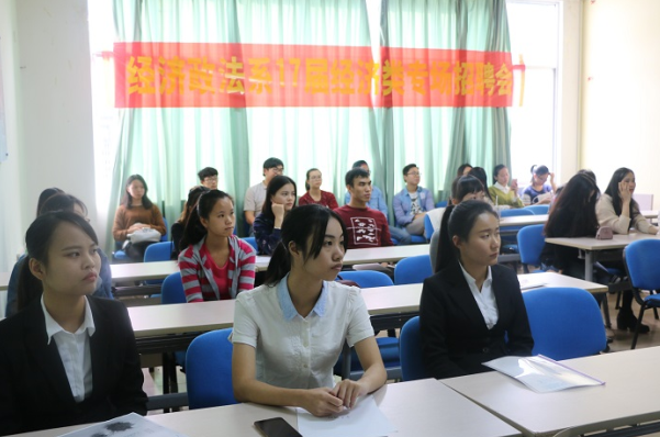 11月17日,经济政法系与招生就业处联合举办国泰君安桂林营业部校园招聘宣讲会,拉开了我校秋季学期招聘会序幕,招聘会吸引了我校经济类40多名毕业生参与。