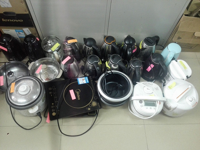 活动在经济政法系党总支副书记秦丽芸老师带领下,由各专业辅导员以及团学干部组成检查小组,对2013级、2014级、2015级学生宿舍进行安全突击检查。在此次排查中查出大功率违规电器一批,其中奶锅1个,电磁炉3个,热得快4个,电饭锅9个,热水壶13个。为了避免学生宿舍火灾发生,我们呼吁全体同学珍爱宿舍,远离大功率电器带来的隐患和危险。