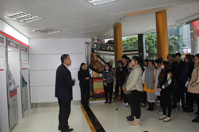 揭牌仪式后,工行桂林分行工作人员为我系师生代表讲解银行业务知识,同学们还亲身体验了工商银行电子银行业务。此外,在工商银行互联网金融讲座过程中,工行桂林分行领导与同学们互动频繁,气氛活跃。