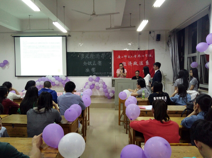 4月27日晚,经济政法系团学学生会办公室与学习部联合举办的“多元经济学”知识竞赛决赛于1508教室开展。莅临本次决赛的嘉宾有经济学讲师向爱保、讲师贺春先、系团学主席张作钦、系团学副书记张郭文翀以及选手亲友团。