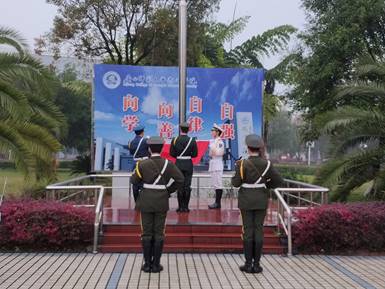 今年是中华人民共和国成立70周年、五四运动100周年,为激励和引领广大青少年大力弘扬以爱国主义为核心的伟大民族精神,坚定“四个自信”,矢志投身新时代夺取中国特色社会主义伟大胜利的新征程,共青团中央决定,面向广大青少年,在全团部署开展“青春心向党·建功新时代”主题宣传教育实践活动。为强化仪式感召,让青少年在仪式中接受理想信念熏陶,特举办本次升旗仪式暨“青春心向党·建功新时代”主题宣传教育实践活动启动仪式。在主持人李伶俐的宣布下,国旗护卫队迈着铿锵的步伐来到了国旗台下,全场一片肃静。在激昂的国歌声中,升旗手振臂一挥,鲜艳的五星红旗徐徐升起,在晨曦中迎风飘扬在漓院的上空。